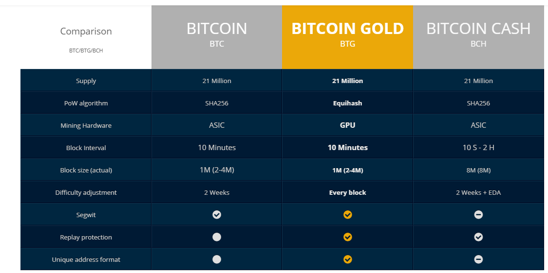 Main Differences – Bitcoin Gold – Bitcoin Cash – Bitcoin