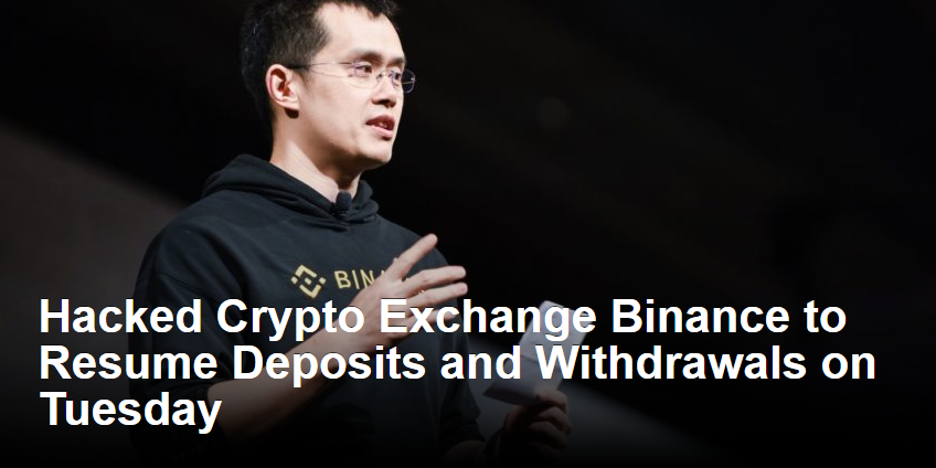 Binance CEO Changpeng Zhao has announced that the crypto exchange plans to resume deposits and withdrawal services on Tuesday.